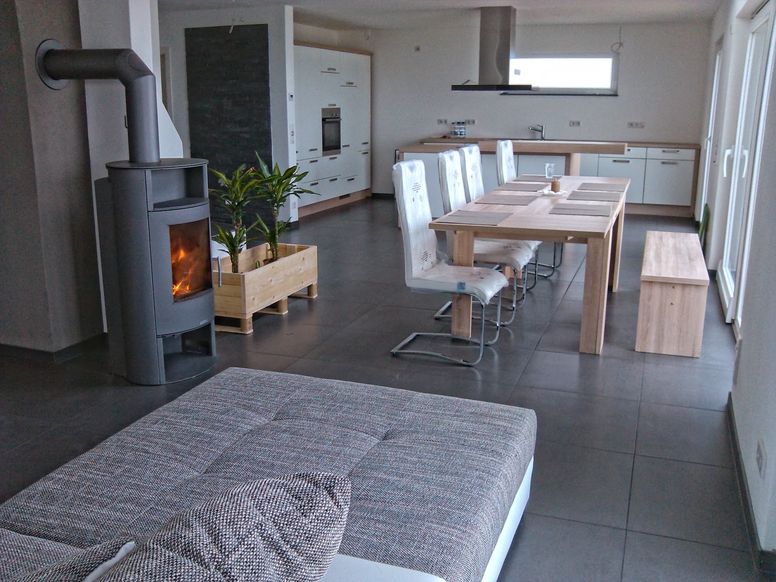 Hier einfach mal ein paar Fotos unseres Ess- und Wohnbereiches. Am Besten gefällt uns immer noch der Schwedenofen für kuschlige Abende! ;-)